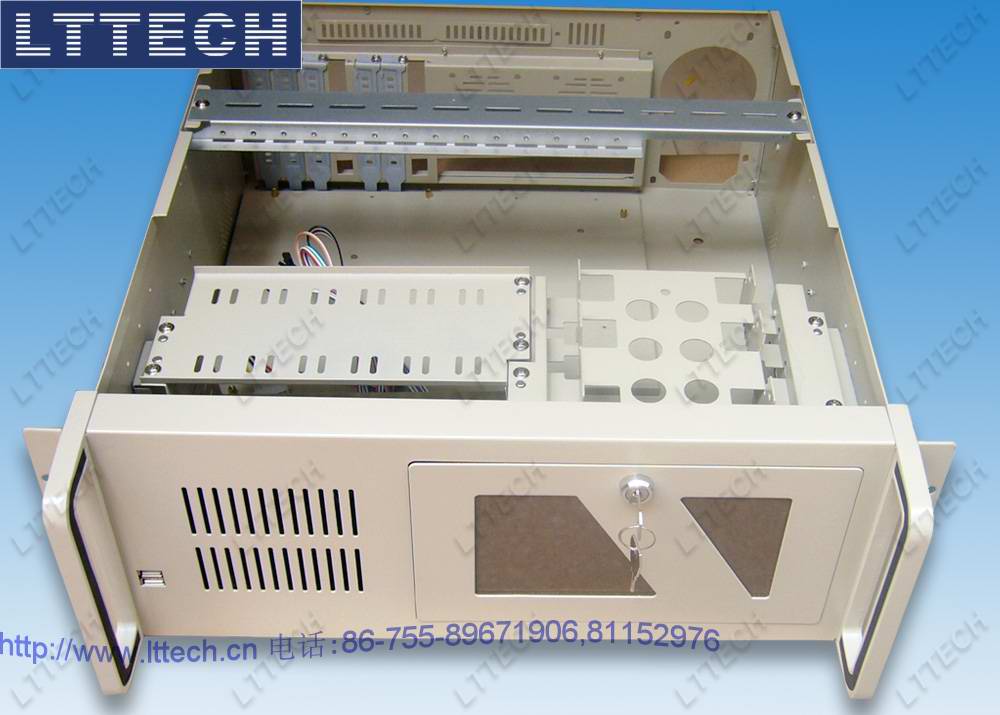 4u高度工业机箱,19"上架机箱,符合EIA-310C上架标准,支持多种ATX12"*9.6"普通商用电脑主板及14槽ISA/PCI/PICMG工业无源底板,支持9个3.5"硬盘,2个5.25"光驱,1个软驱驱动器空间,或12个3.5"驱动器空间,支持普通标准ps/2电源