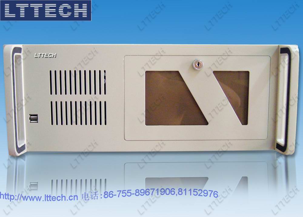 4u高度工业机箱,19"上架机箱,符合EIA-310C上架标准,支持多种ATX12"*9.6"普通商用电脑主板及14槽ISA/PCI/PICMG工业无源底板,支持9个3.5"硬盘,2个5.25"光驱,1个软驱驱动器空间,或12个3.5"驱动器空间,支持普通标准ps/2电源