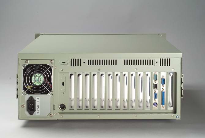 4U高度19"上架型工控机箱,符合EIA-310C上架标准; 支持多种12"×9.6"商用电脑主板及14槽ISA/PCI/PICMG工业无源底板;支持2个5.25"光驱和4个3.5"硬盘驱动器空间